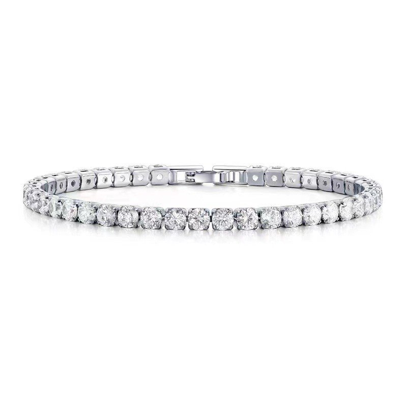 White CZ crystal tennis bracelet in silver setting. The timeless classic that never ages — pure brilliance on your wrist.
