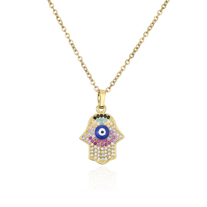 Why choose Fashion Palm Demon Eyes Drop Oil Copper Plated Real Gold Micro Inset Zircon Necklace Female?