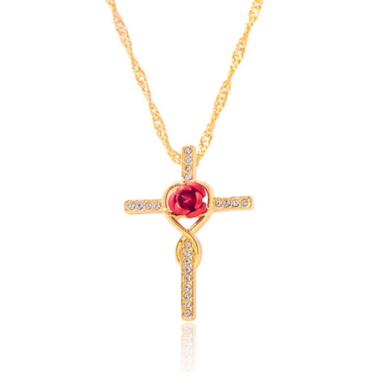 Why choose Fashion Rose Flower Cross Necklace Gold Crystal Infinity Anka Pendant Necklaces For Women Religious Jewelry?