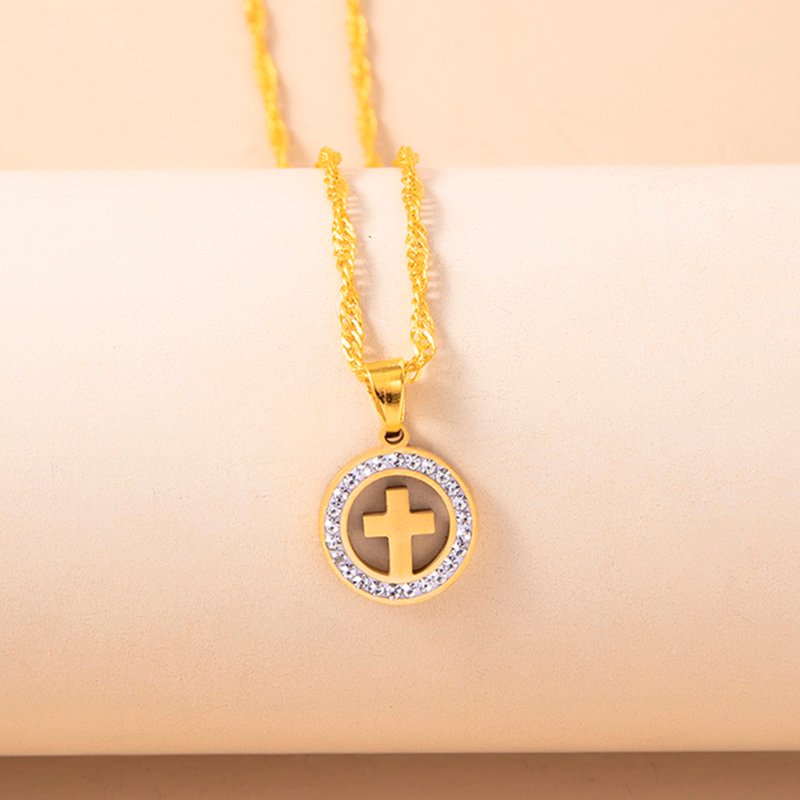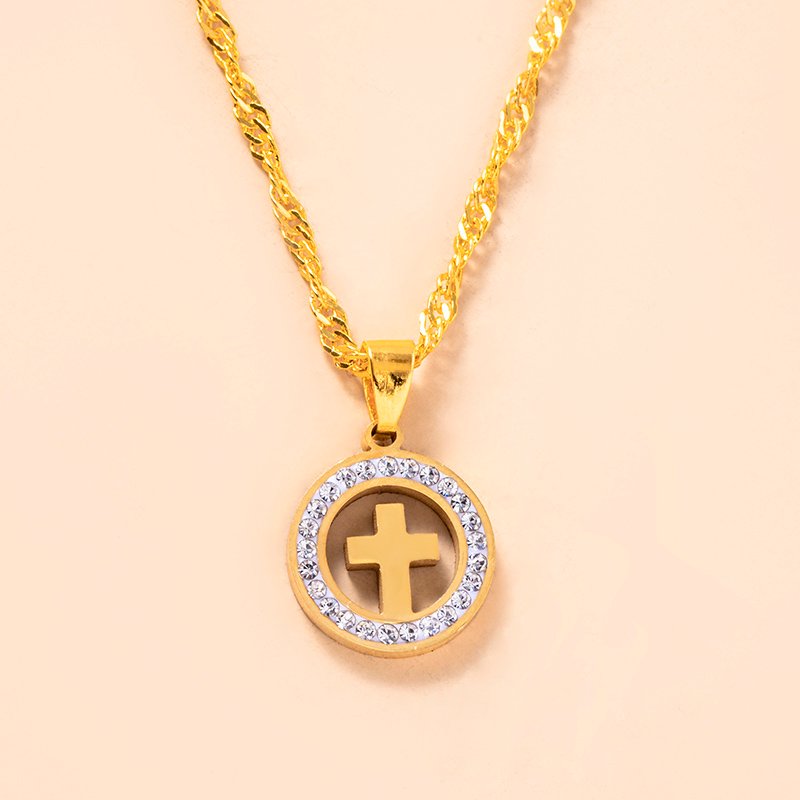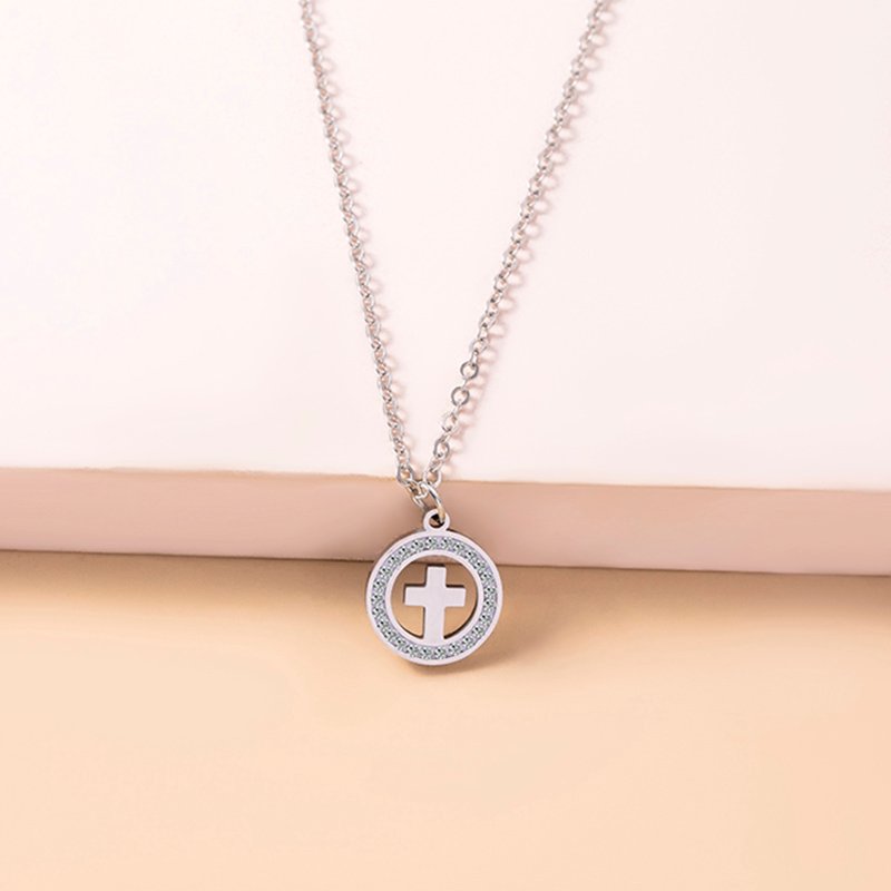 Why choose Gold Hollow Round Cross Necklace Silver Stainless Steel Crystal Circle Pendant Necklaces?