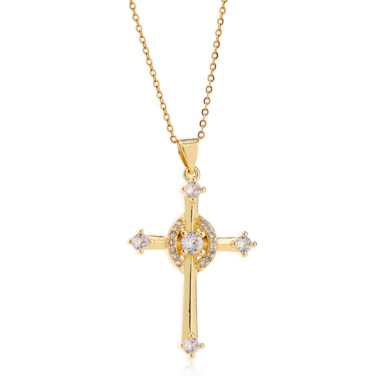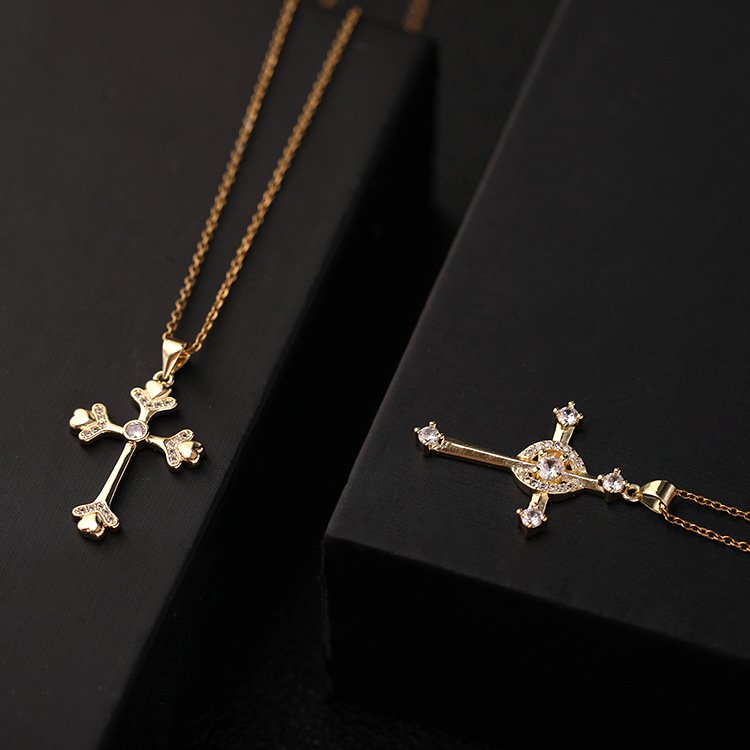 Be the first to review “Gold-plated Copper Zircon Love Geometric Cross Pendant Necklace”