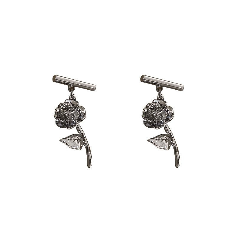 Color: Silver Post-Rose Earrings