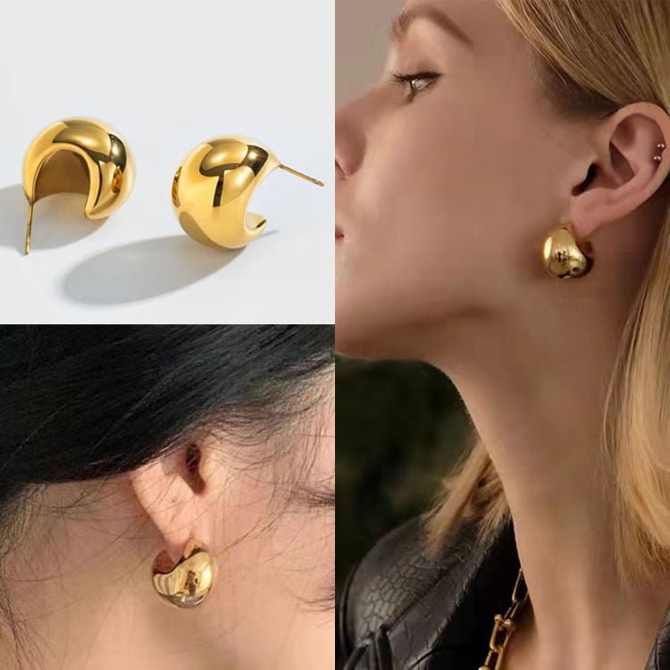 Why choose New Crescent Moon Semi-circle Wider And Thicker Senior Sense Of Titanium Steel Earrings Earrings Buckle 18K Gold?