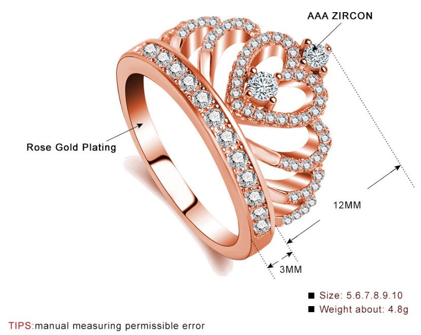 Why choose Princess Style Cubic Zirconia Hollow Heart Silver / Rose Gold Color Crown Ring Jewelry Party Engagement Wedding?