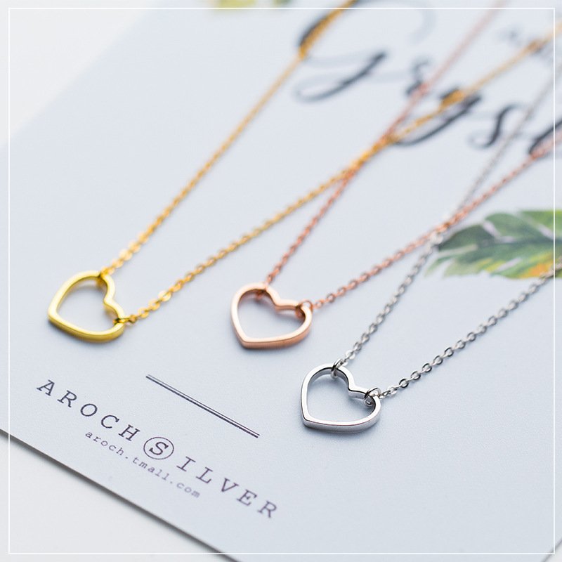S925 Silver Women’s Fashion Sweet Simple Hollow Heart Necklace NecklacesS925 Silver Women’s Fashion Sweet Simple Hollow Heart Necklace