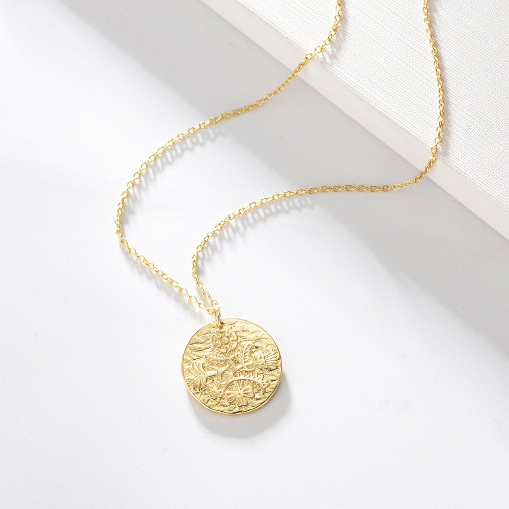 495d7831 bf90 4151 9092 30af69a355a4 S925 Sterling Silver Gold-plated Twelve Constellation European And American Personality Embossed Necklace