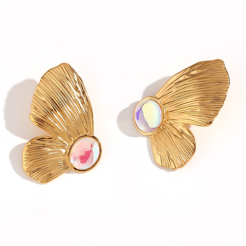 Color: Cast colorful crystals butterfly wings stud earrings-gold