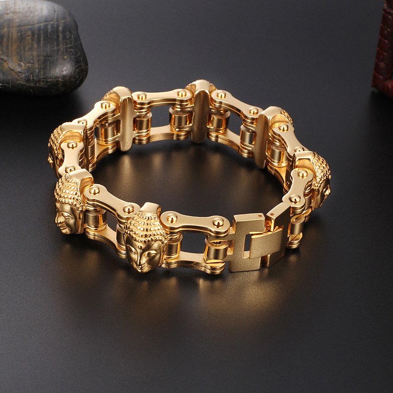 Why choose Titanium Gold Buddha Bike Chain Bracelet Men?